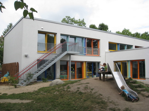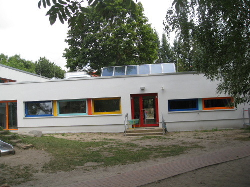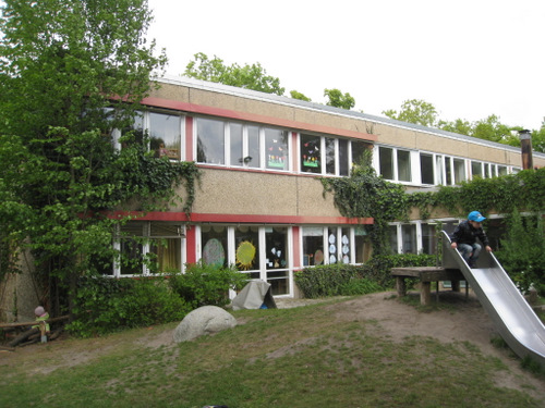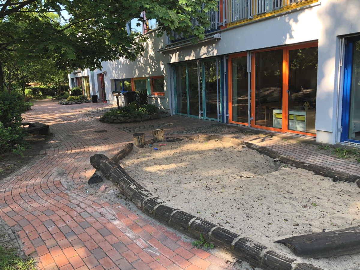 In unserem Archiv haben wir Fotos unserer Kita vor der Modernisierung 2012 gefunden. Unmittelbar danach wurden ebenfalls Fotos angefertigt, so daß der Zustand vor und nach der Modernisierung erkennbar ist. So ganz aktuell sind die neueren Fotos aber nicht: Im Spielbereich an der Rutsche wurde inzwischen neuer Rasen verlegt ….